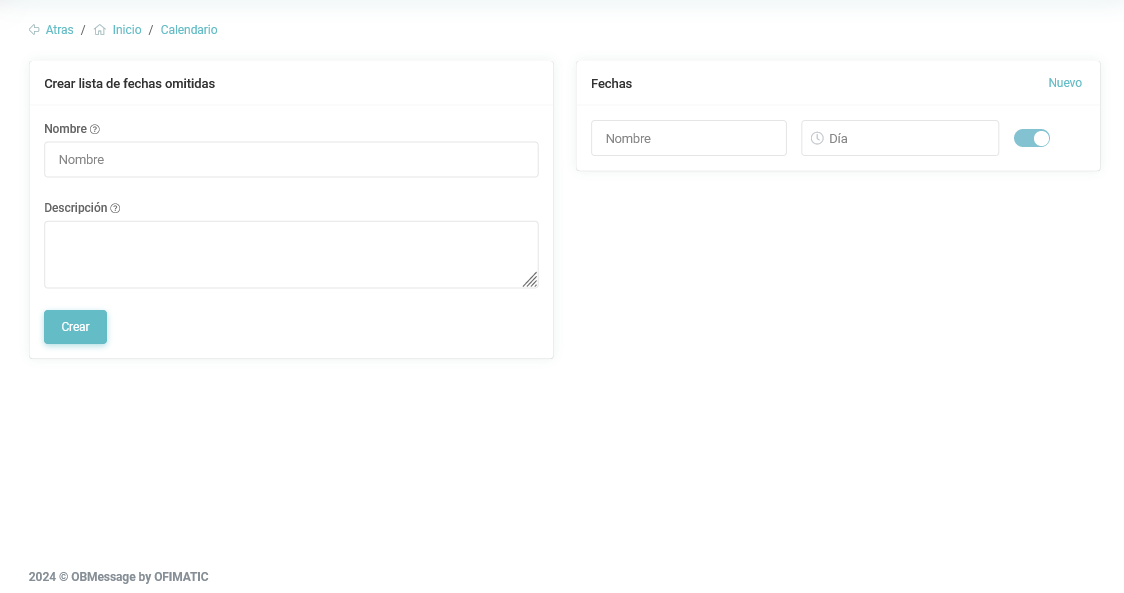 Fechas: En este apartado se colocan las fechas que se agregaran a la lista.