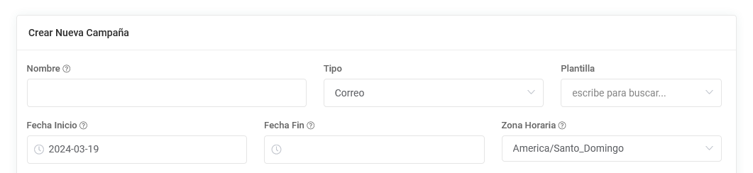 Al momento de seleccionar el tipo de campaña que crearemos tendremos que seleccionar una plantilla, para poder crear una campaña.