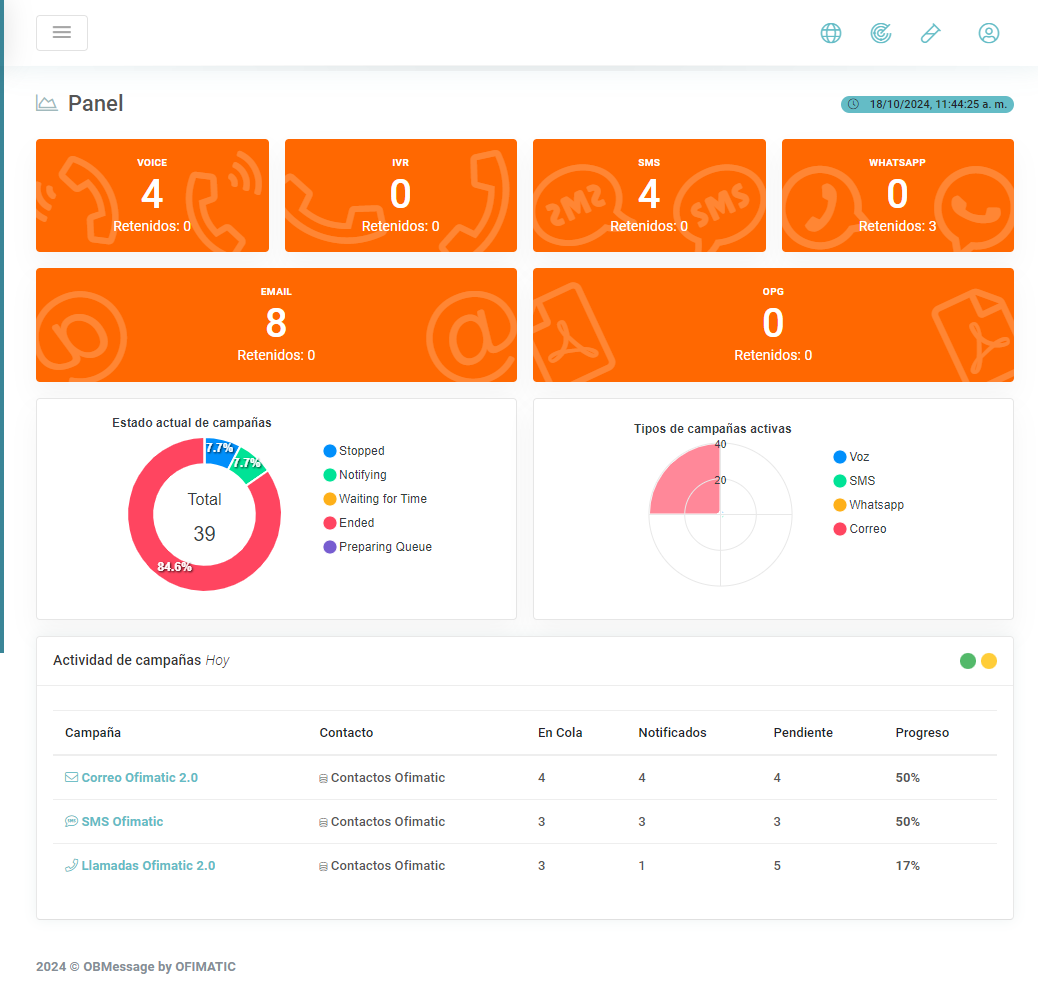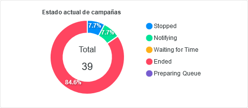 En este apartado podrá ver de forma gráfica la cantidad de campañas con sus estados desde que se contrato la plataforma.