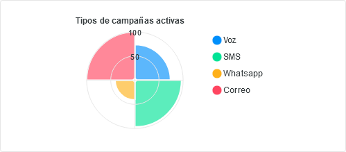 En este apartado podrá ver de forma gráfica la cantidad de campañas que se encuentran creadas dividas por servicios.
