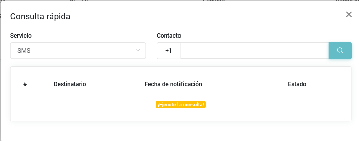 En este apartado podrá ver el estado de los mensajes enviados a un número telefónico o dirección de correo electrónico.