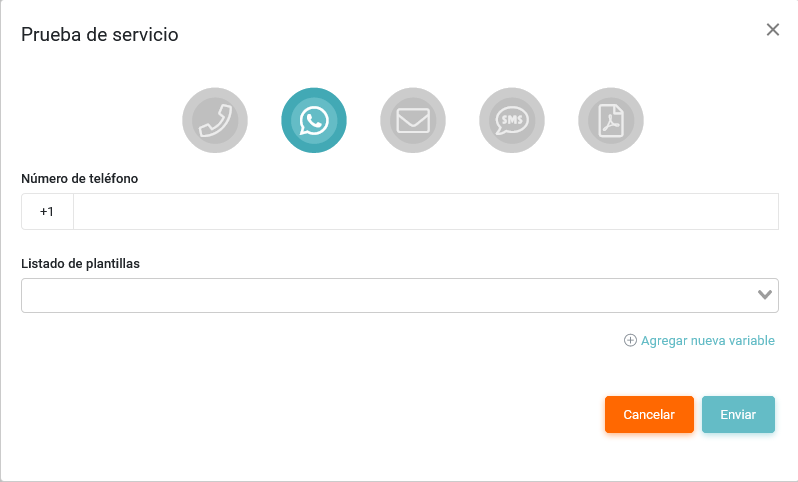En este apartado se podrán realizar las pruebas para verificar el servicio de envío de WhatsApp.