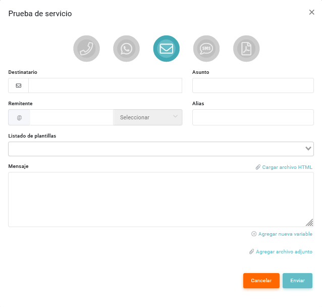 - Mensaje: Debe indicar el contenido del mensaje.