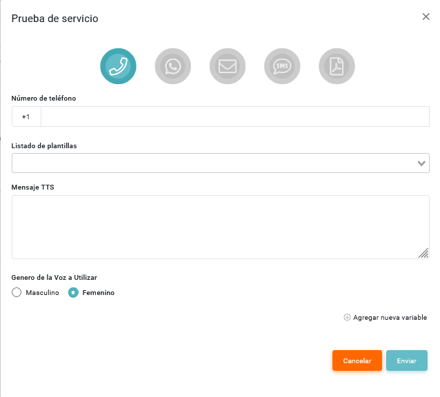 - Genero de la voz a utilizar: Debe indicar el genero de la voz a utilizar.