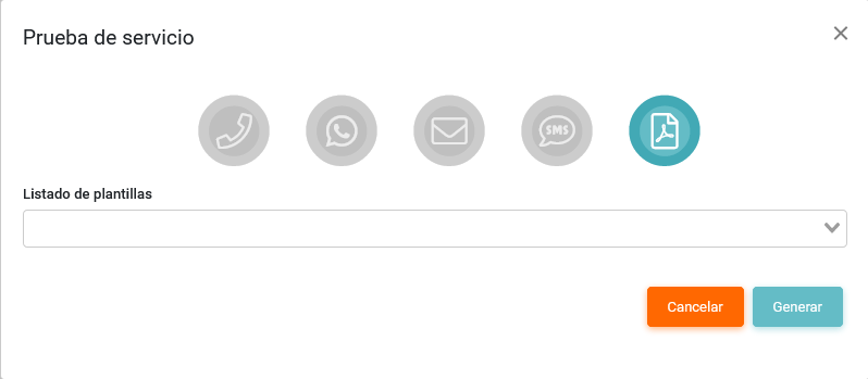 - Listado de plantilla: Debe indicar la plantilla que desea enviar en la prueba.