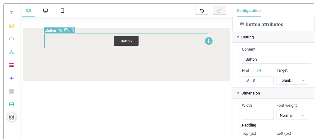- Manejador de Botones: Este permite agregar botones a las plantillas y incrustar enlaces a los botones para que redirijan a otra parte, puede cambiar todas las propiedades del botón usando el apartado de