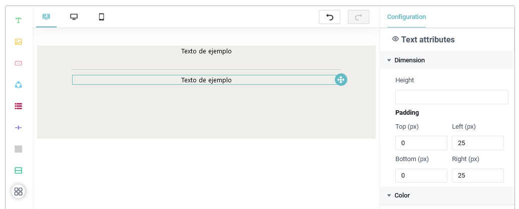 - Manejador de texto: Este permite agregar un cuadro de texto el cual permite que sea customizable usando el aparttado de