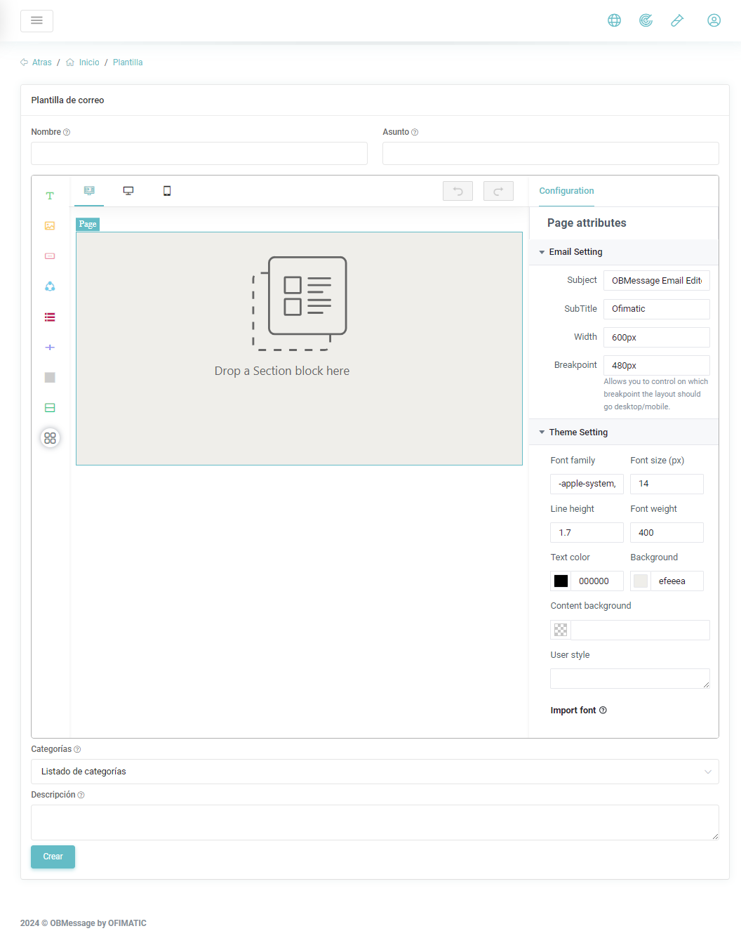 Categoría: En este campo se indica la categoría que va a identificar esta plantilla. Para mas información puede ir al apartado de categoría.