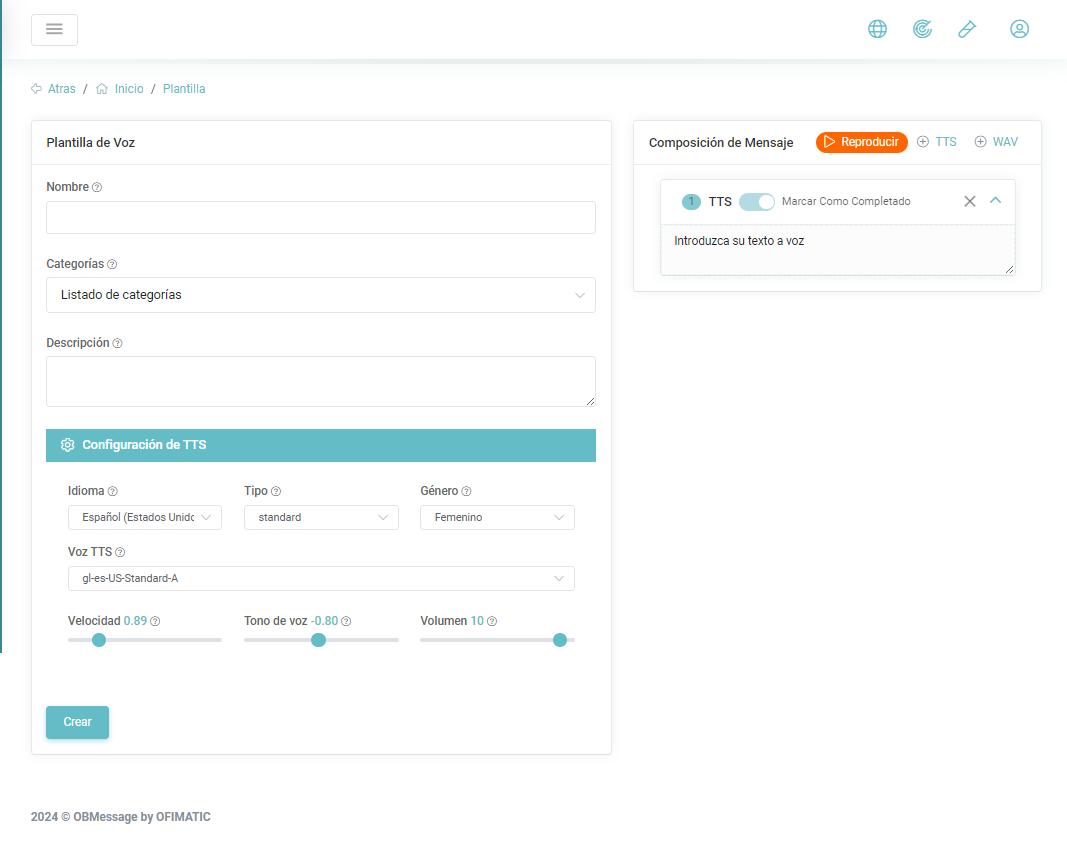 En este apartado se podrán crear las plantillas para las notificaciones de voz.
