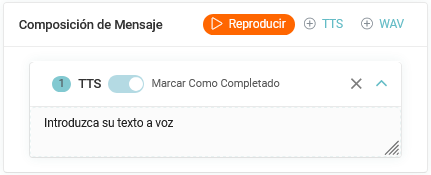 En este apartado se puede crear la composición del mensaje, con esto podemos decidir como queremos construir el mensaje que queremos enviar, utilizando una combinación entre TTS y WAV.